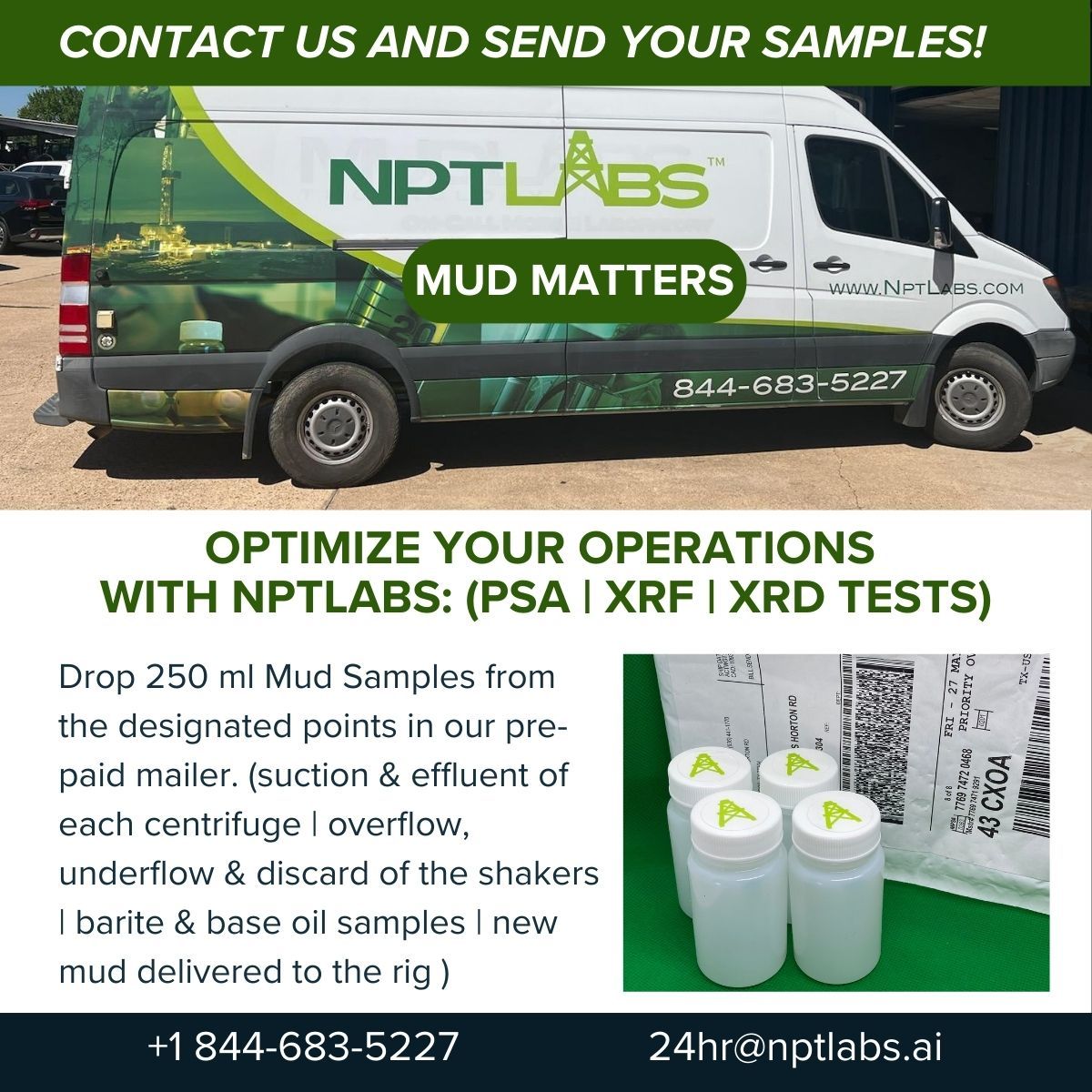 You mail the mud samples and we manage the rest!